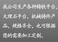 全意鑄鐵平臺平板廠家專注生產(chǎn)T型槽鑄鐵平臺,大理石氣浮實驗石平臺,han接鑄鐵平臺,裝配鑄鐵平臺,檢測測量大理石平臺,試驗鑄鐵平臺,測量大理石平板,T型槽平臺,電機試驗平臺,三坐標(biāo)測量平臺等鑄鐵平板來圖加工定做業(yè)務(wù),以合理的價格,專注的技術(shù)服務(wù)于國內(nèi)外客戶,互利合作,共同發(fā)展!公司位于河北交河開發(fā)區(qū),京滬鐵路、104國道、106國道、京福高速公路橫穿而過,與我國的兩大直轄市北京、天津近在咫尺,地理位置優(yōu)越,交通非常便利。我公司本著以誠納客”“嚴(yán)把質(zhì)量關(guān)”“價格優(yōu)惠”“用戶至上的原則,幾十年兢兢業(yè)業(yè),受到用戶的一致好評!